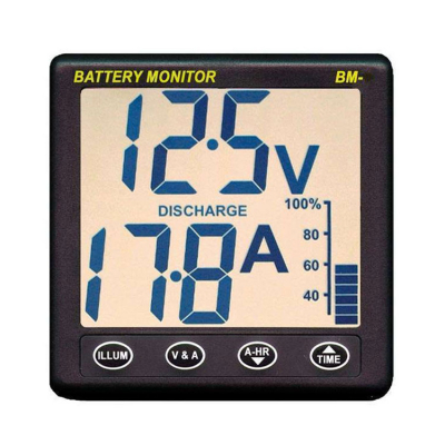 Denna batterimonitor levereras med en parallellkoppling/ shunt och en kabel redo för montering. Instrumentet visar kontinuerlig strömförbrukning, laddnings-/urladdningstid och antal amperetimmar. Dessutom visar instrumentet också status under laddning samt tid för laddning/urladdning. Denna information ger en effektivare användning av batterierna, vilket kan förlänga batteriernas livslängd och minska risken för fel.