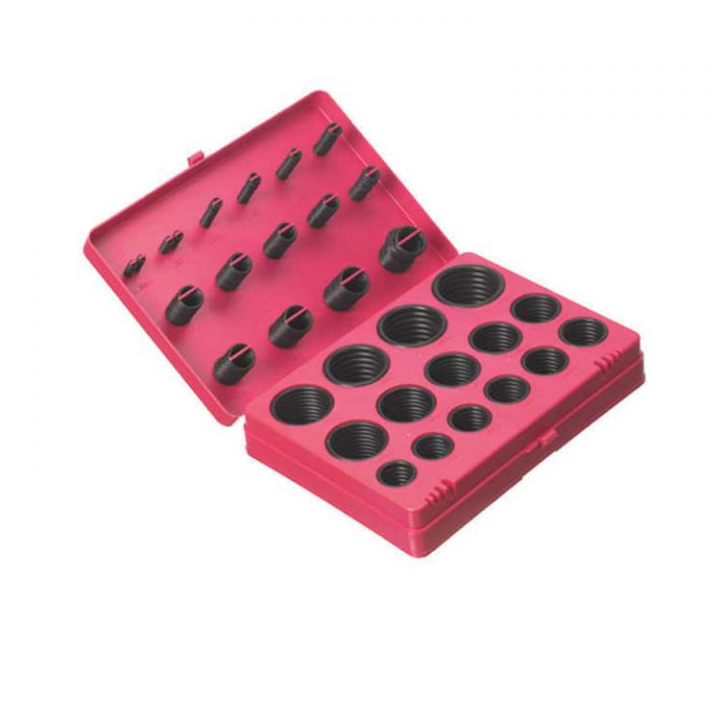 Sortimentslåda med o-ringar i tum, kommer i 30 storlekar och 382 st. - Egenskaper