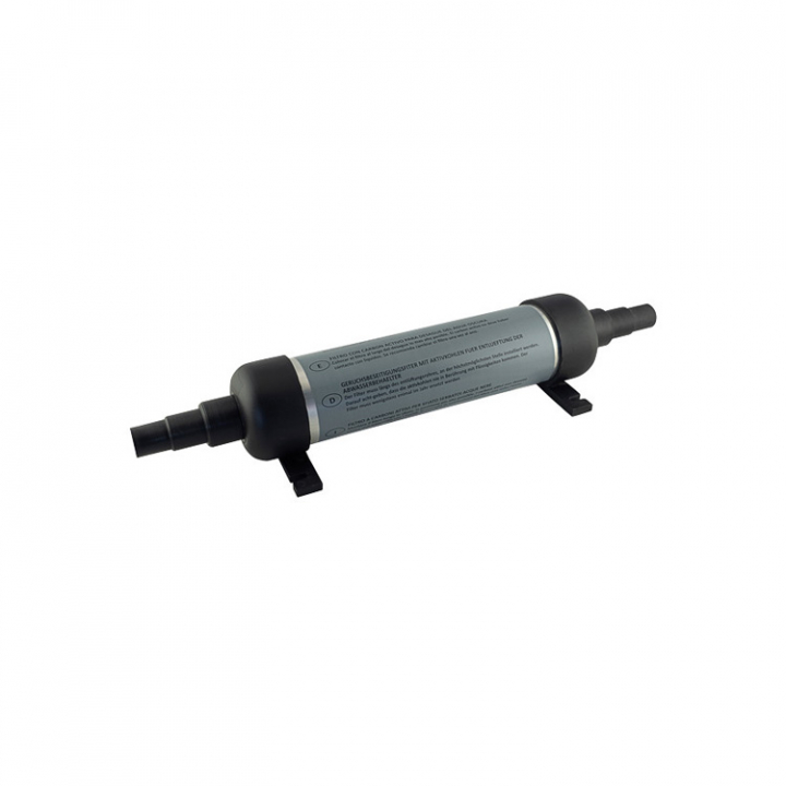 Odörfilter med aktivt kol monteras på septiktankens avluftningsslang för att förhindra dålig lukt. Monteras så högt som möjligt.