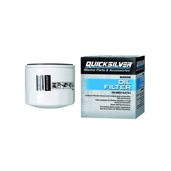 Quicksilver premiumkvalitetsoljefilter, 20-mikron filterelement som ger överlägset motorskydd. Filtret uppfyller eller överträffar OEM-tillverkarens specifikationer.