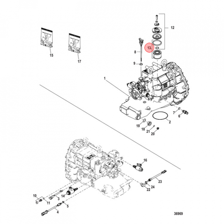Oljefiltersats (879194241) till Mercruiser motorer. Titta i din epc för att säkerställa att delen passar just din motor. - Egenskaper