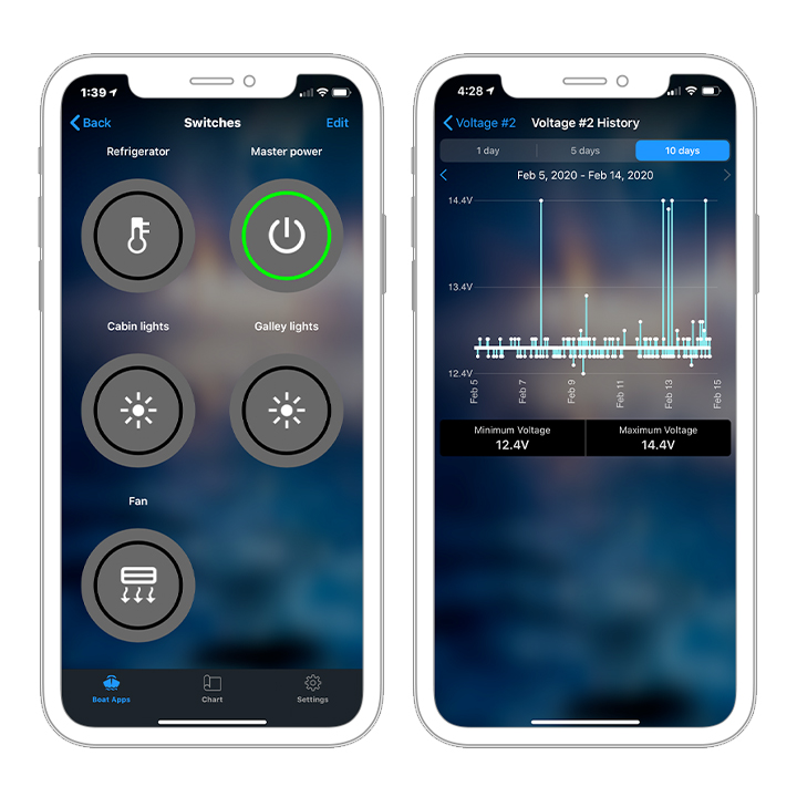 Om du fjärraktiverar upp till fem utvalda system, inklusive luftkonditionering/värmare, batteriladdare, ismaskiner med mera med reläbrytare kommer du snabbare ut på sjön. Missa aldrig en uppdatering.