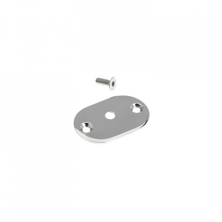 Oval monteringsplatta till Rocas grabbräcke, finns i enkelt rostfritt och svart eloxerade.