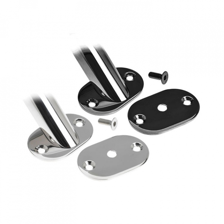 Oval monteringsplatta till Rocas grabbräcke, finns i enkelt rostfritt och detta svart eloxerade.