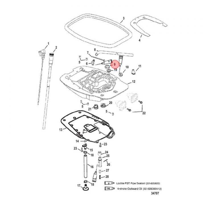 Packbox (828932) till adapterplattan på Mercury/Mariner 11-25, 30-40, 50-60 hk utombordare. - Egenskaper