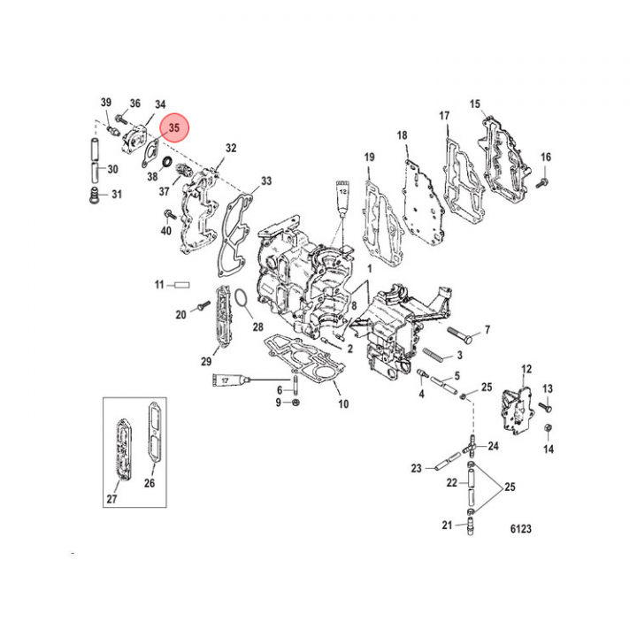 Packning Thermostathus 6-15 hk (19205002). Övre packning till thermostathuset, se sprängskiss (bild)