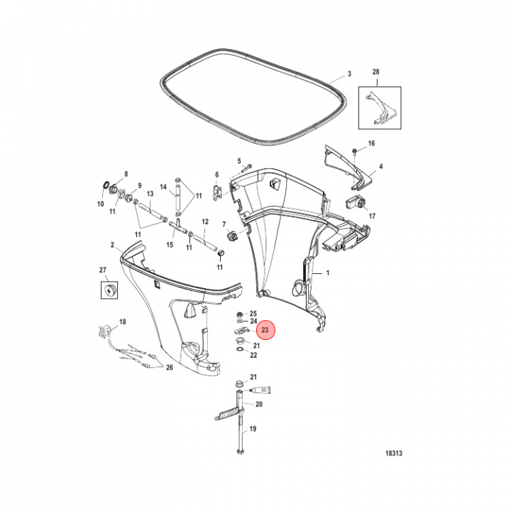 Pawl/Hake (8219423) till underkåpan på Mercury 75-125, 135-200, 225-400 hk utombordare. Titta i din epc för att säkerställa att delen passar just din motor. - Egenskaper