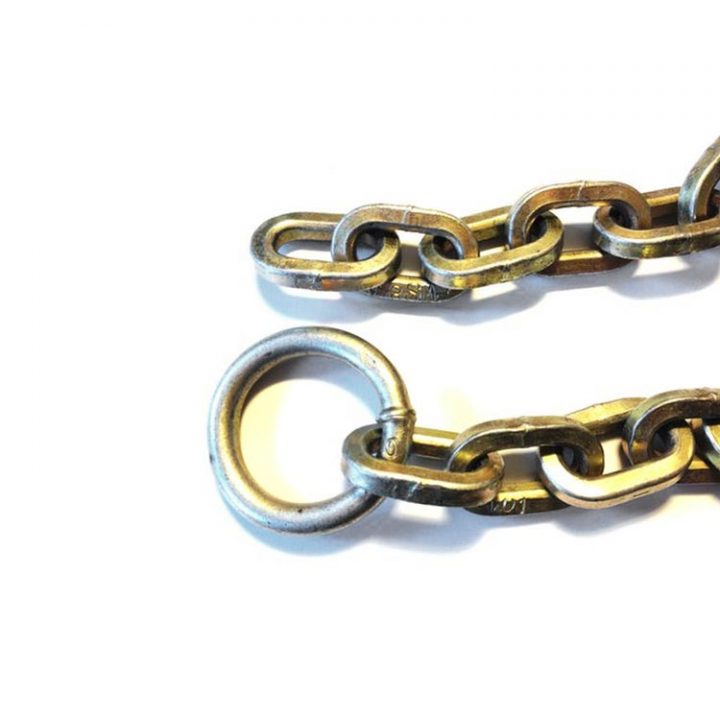 Kvalitetskätting, tillverkad i Österrike, som uppfyller försäkringsklass 3. Gulkromaterad, fyrkantig länkprofil, med löpring. Kättingöverdrag/Strumpa i nylon ingår. - Egenskaper