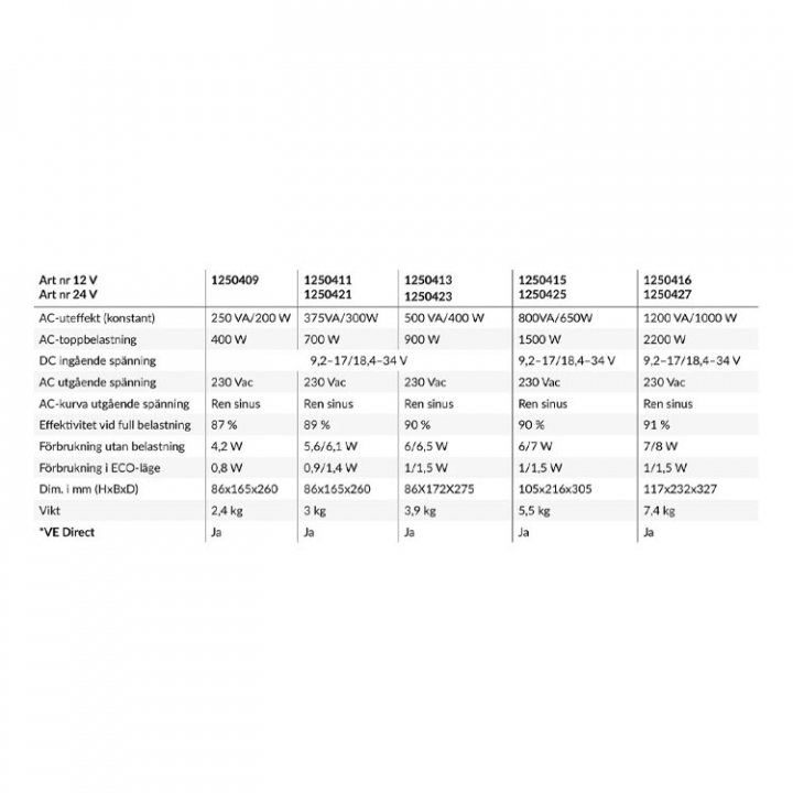 SinusMax-tekniken ger extra startkraft. Det är perfekt för förbrukare som behöver hög startström. Ren sinuskurva: är samma slags ström som vi har i våra hem. Ren sinusvåg innebär dessutom att även känslig utrustning som datorer, TV etc kan användas utan risk att skadas. Med Bluetooth-dongle kan du konfigurera och övervaka invertern via Victron connect.
