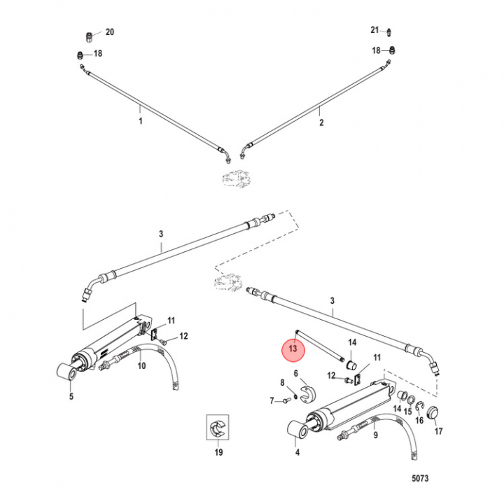 Pinnburt och e-ring x2 (815953A01) till trimcylindrarna på Mercruiser Alpha One Gen II. Titta i din epc för att säkerställa att delen passar just din motor.