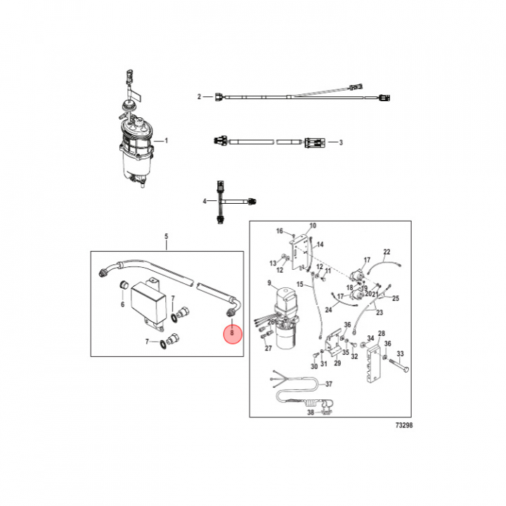 Powertrim Slang (86036Q) till Mercury utombordare. Titta i din epc för att säkerställa att delen passar just din motor.