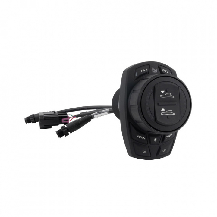 Med Pro Control Assist Keypad har du kontrollen i dina händer. Med en smart, elegant och intuitiv kontrollratt som är utformad för att ge responsiva precisionskontroller. Dra nytta av fördelarna med Pro Control, inklusive Holeshot Assistant, NMEA 2000-anslutning och möjlighet att spara dina favoritpositioner för trimplanen.