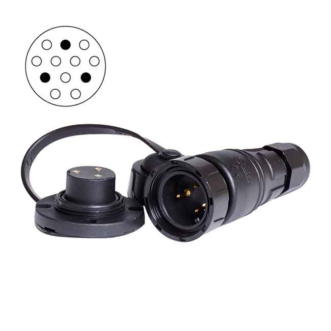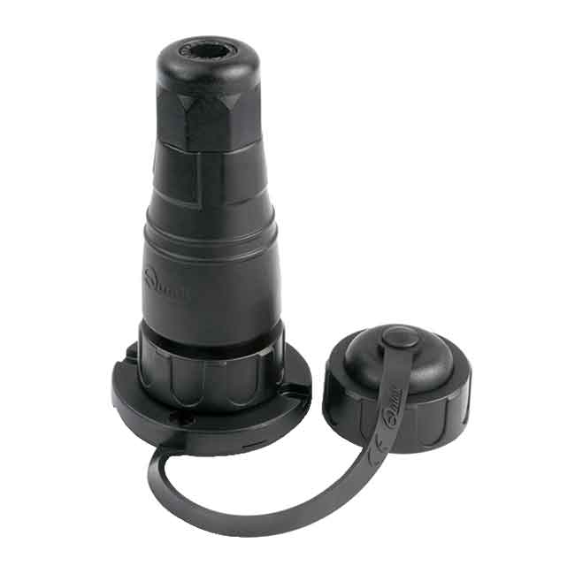 Vattentät däckkontakt med guldpläterade kontakter som säkerställer fullständig anslutning även med små signaler. Anslutning max 1,5 mm² Allt vid kontinuerlig belastning.
