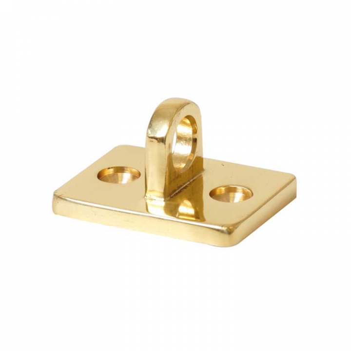 Väggbeslag till ledstång i polerad eller kromad mässing med ögla. Kan användas med karbinhake eller pistolhake. Väggbeslaget har en höjd på 22 mm och levereras med skruvar. - Egenskaper