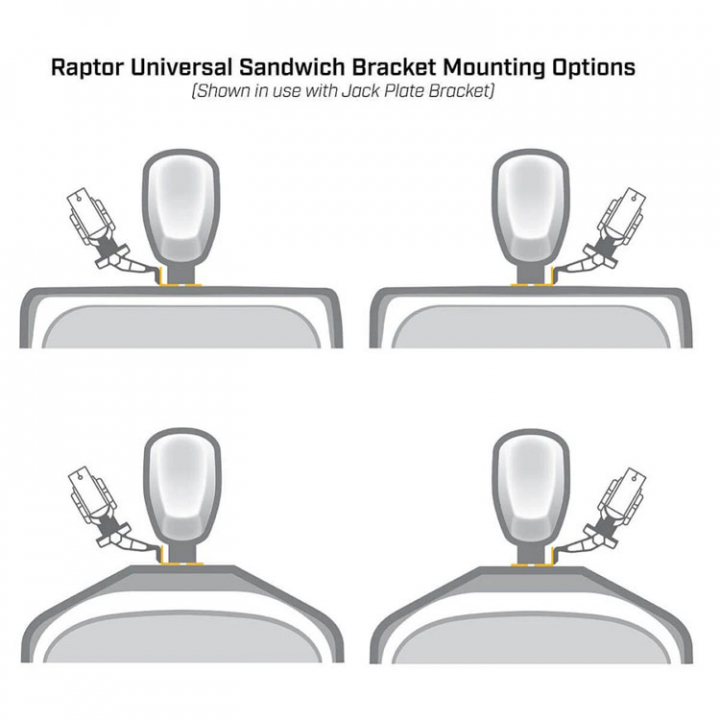 Raptor Sandwich fäste som monteras mellan motor och akterspegel för att möjliggöra montering tillsammans med Raptor Jackplate fästen.