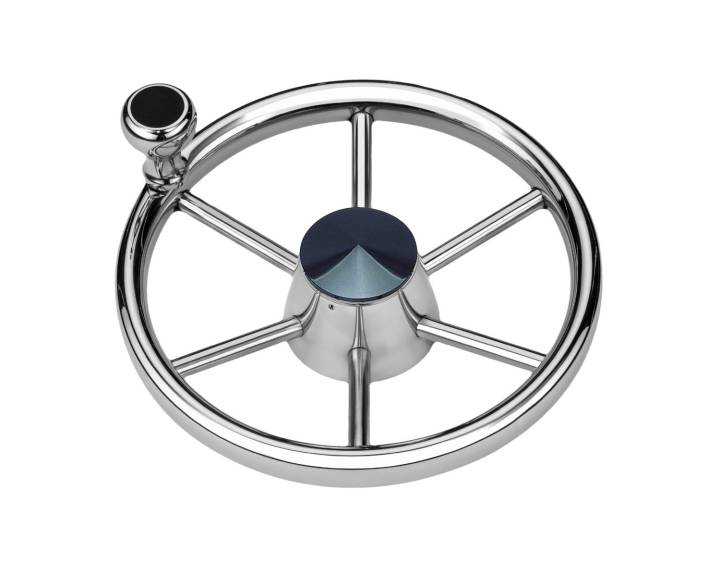 Stilfull rostfri ratt med knopp. Passar Teleflex, Morse, Optimus, SeaStar & BayStar styrningar.