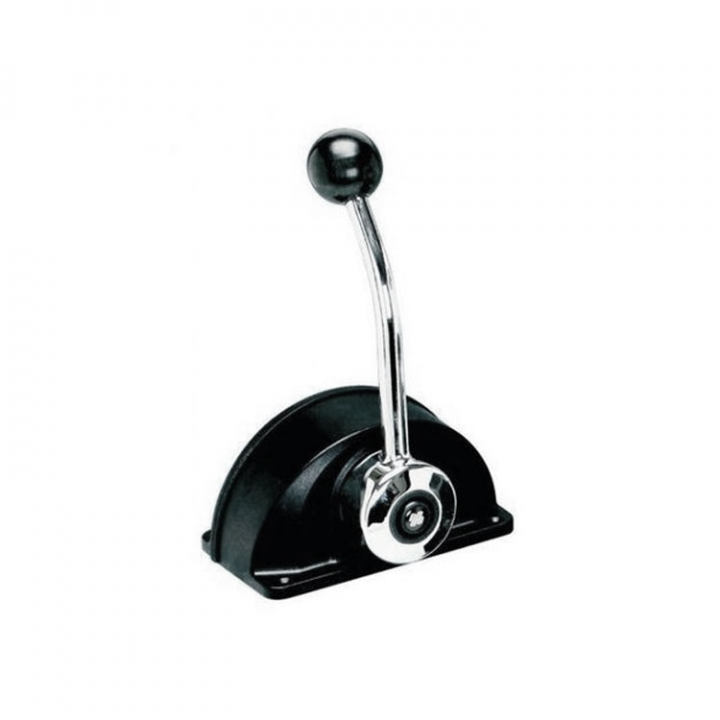 Toppmonterat, kompakt lågprofilreglagebox av svartlackerat aluminium. Reglaget friläggs genom att trycka in knappen på sidan och påverkar då bara gaspådrag.
