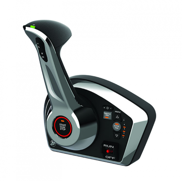 Mercury DTS Elektoniskt reglage Gen2 är både nyskapande och användarvänligt. Det medföljer installationsdelar, den är förprogrammerad för en styrplats. Tänk på att du behöver GPS (8M0179960) för att kunna använda Active Trim-funktionen.