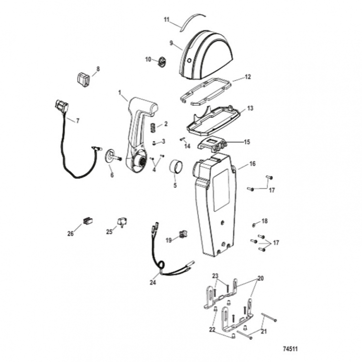 Mercury Toppmonterat reglage med trim. För komplett sats behövs även kablagesats (896537T15), tändningslås (893353A03), Nödstoppskontakt (19674A07 eller 19674A08) samt GEN II reglagekablar i önskad längd. - Egenskaper