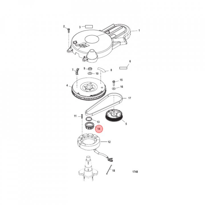 Remhjul till kamrem (833102T) på Mercury/Mariner 11-25, 30-40, 50-60 hk utombordare. Titta i din epc för att säkerställa att delen passar just din motor. - Egenskaper
