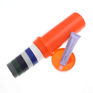 Reparationssats för gummibåtar och rundningsmärken i PVC. (Passar för rundningsmärkena 40266 & 38076) Innehåller laglappar i olika färger samt lim. - Egenskaper