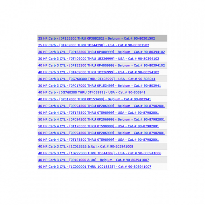 Reparationssats (8542561) till förgasaren på Mercury 25-60 hk utombordare. Titta i din epc för att säkerställa att delen passar just din motor. - Egenskaper
