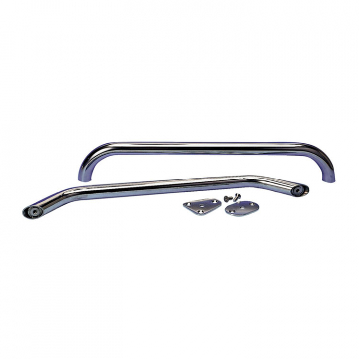 Handtaget kan monteras med genomgående bult underifrån, eller skruvas fast från ovansidan. Skall räcket skruvas fast från ovansidan behövs bricka med skruv. Bricka med skruv säljs styckevis.