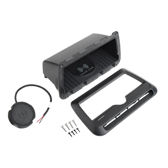Perfekt för integration i konsoler, sittplatser, skåp med mera. Lägg bara ner telefonen i utrymmet och börja ladda trådlöst direkt. Den halkfria mattan förhindrar din telefon från att glida runt inuti, och framkanten ger enkel åtkomst med ett tumgrepp, och ser till att din telefonen stannar i hållaren.
