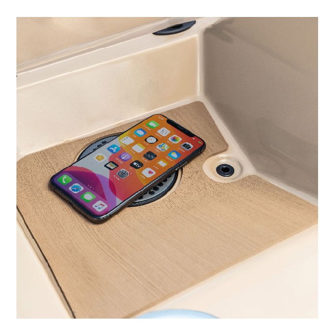 Det IPX6 vattentäta Qi-certifierade trådlösa laddningsområdet möjliggör kabelfri laddning i utomhusmiljöer. Detta är världens första vattentäta trådlösa laddningssystem, speciellt designat för användning ombord, med unik teknologi inkapslad i en helt förseglad IPX6-enhet.