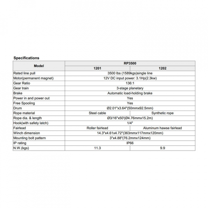 RP3500 är en wirebestyckad kraftig släpvagnsvinsch lämplig för båtar upp till 1050kg. Vinschen levereras komplett med fjärrkontroll, kabel, relä och kablage.