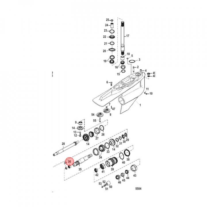 Rullager (57410) till propelleraxel till Mercruiser Bravo I/II/III. Titta i din epc för att säkerställa att delen passar just din motor. - Egenskaper