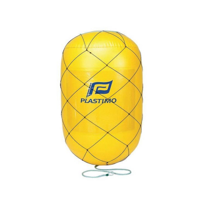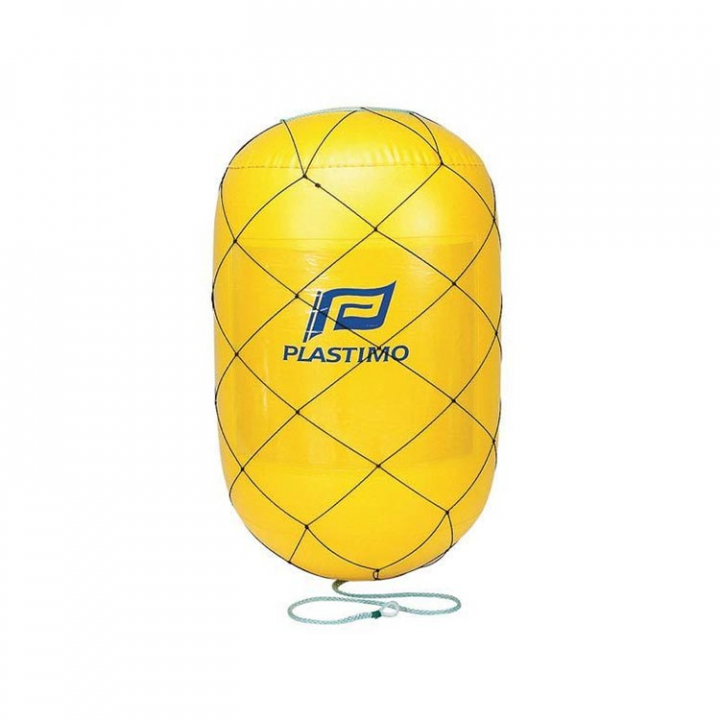 Stor gul markeringsboj i PVC, påverkas inte av UV-strålar. Medföljande m. bärhandtag och 2 luftventiler. Bojen har en reklamplats på