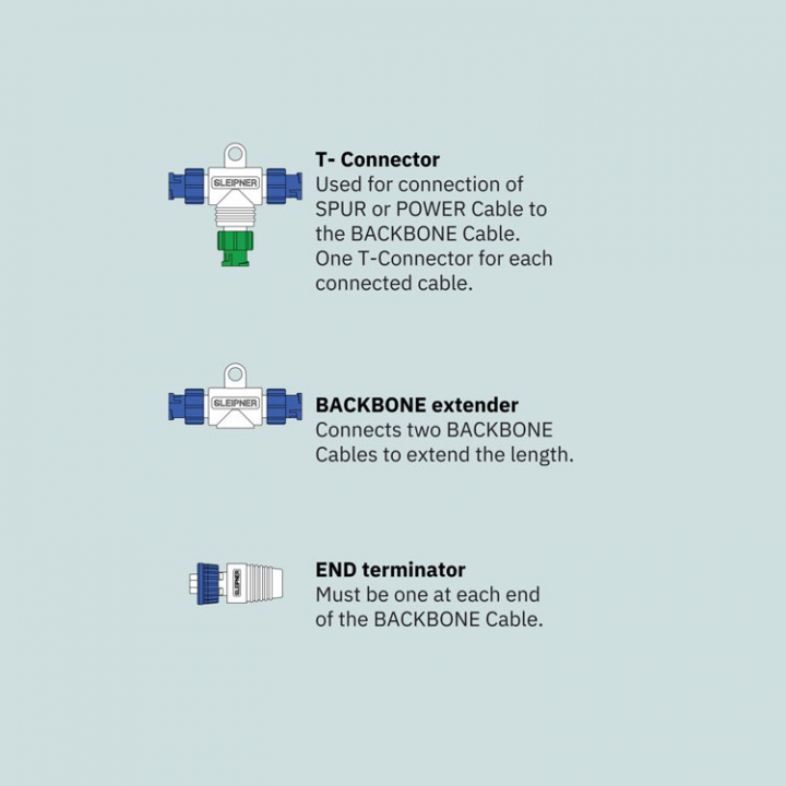 S-link spur power kabel, måste finnas en i varje system. Ansluter Backbone-kabeln till strömförsörjningen.