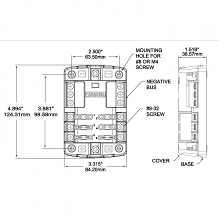 • Säkringshållare för 6st ATO/ATC flatsiftsäkringar.• Inbyggd jordplint för 6+1 anslutningar.