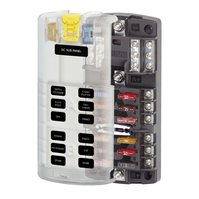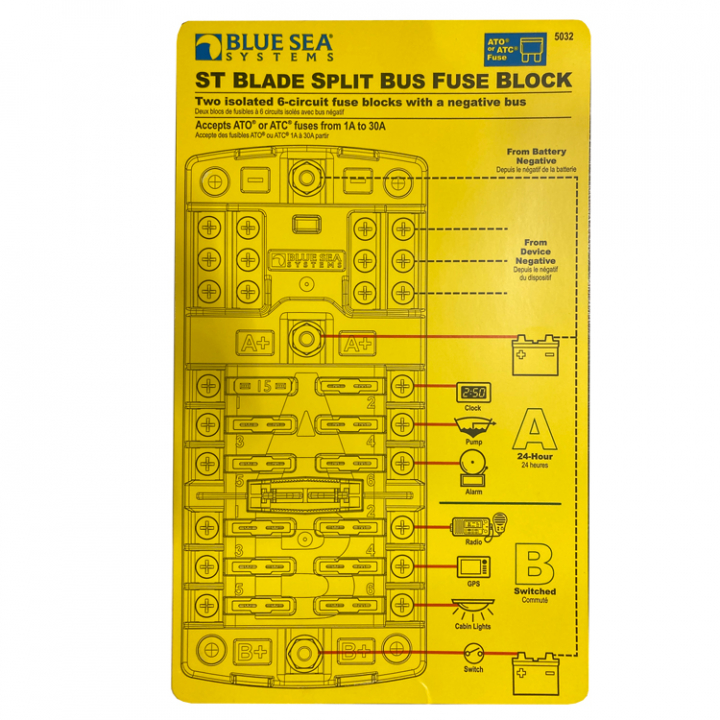 • Klart isolerings skydd med etikettfördjupningar och förvaring för två säkringar uppfyller ABYC / USCG-isoleringskraven
