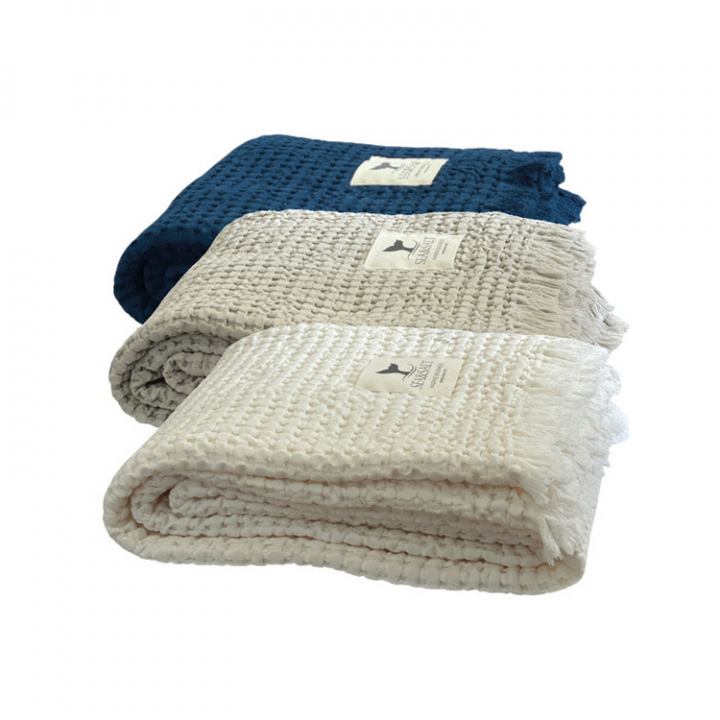 Serien kombinerar funktionalitet med ett marint formspråk, och handduken finns i färgerna Navy, Beige och Ecru – noggrant utvalda för att skapa en harmonisk estetik som passar moderna båt- och utomhusmiljöer. Den textila konstruktionen säkerställer att handduken behåller sin struktur och färg över tid och samtidigt förblir lätt och enkel att packa, vilket är en fördel i begränsade förvaringsutrymmen som skåp, stuvfack och strandväskor.