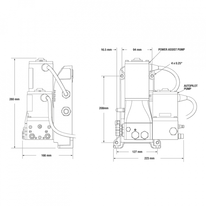 • 24V autopilotpump för cylindrar mellan 205-345 cm³