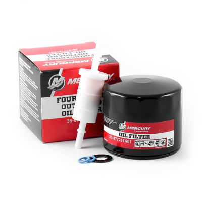 Servicesats till F75-115 hk EFI 1.7L, serienummer 1B366823-2B094995, skall enligt Mercurys serviceschema bytas varje år eller var 100e timme (Det som inträffar först).