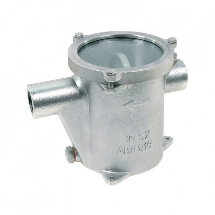 Rostfritt sjövattenfilter i två dimensioner med härdat lexanlock. Godkänd enligt RINA DIP 1034/03/CS.