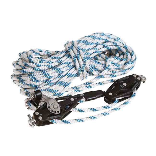 Skotsystem 4:1 med 60 mm block och 25 meter splitsad Liros Hercules lina Ø 10 mm.