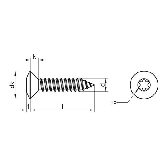 Rostfri och syrafast plåtskruv med kullerförsänkt skalle och torx-spår enligt DIN 9479. Du finner dom olika paketmängderna i rullisten.