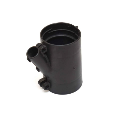 Denna riggfläns är tillverkad av svart marinplast och mäter ungefär 2 3/4" OD x 4 1/8" H x 4" L när den är monterad. Har en bränsleslangport med ungefär 3/4" ID.