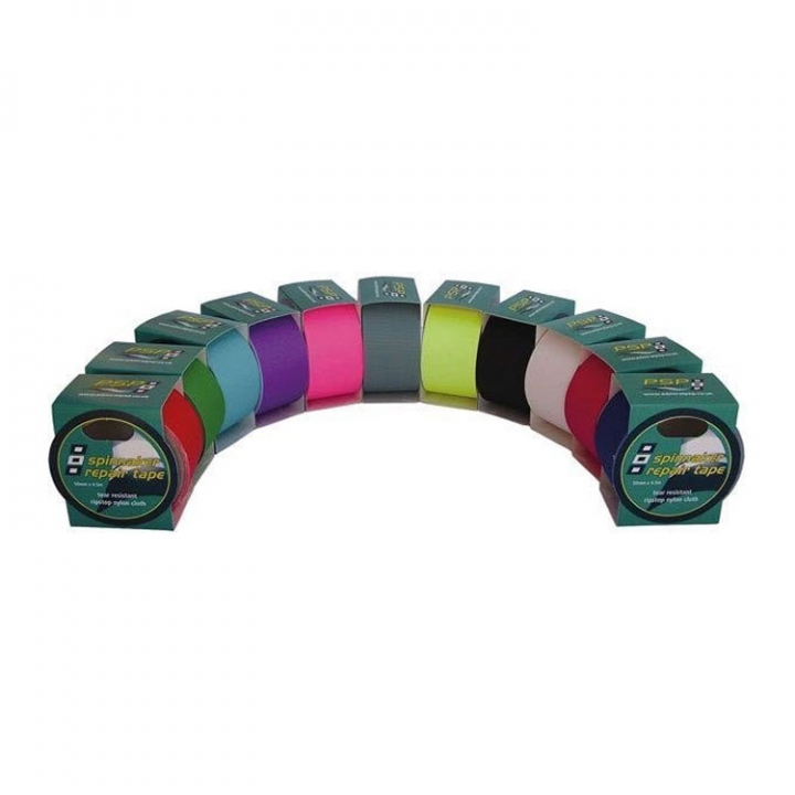 Spinnakertejpen är känd för snabb och effektiv reparation av segel, sprayhoods, seglarkläder m.m. Finns i en mängd färger - Egenskaper