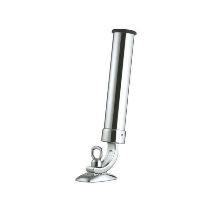 Fiskespöhållare i kromad mässing med invändig plastbussning, justerbar med dold skruv.