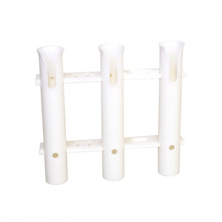 Skottmonterad fiskespöhållare i vit UV-resistent plast. Passar 3 fiskespön.
