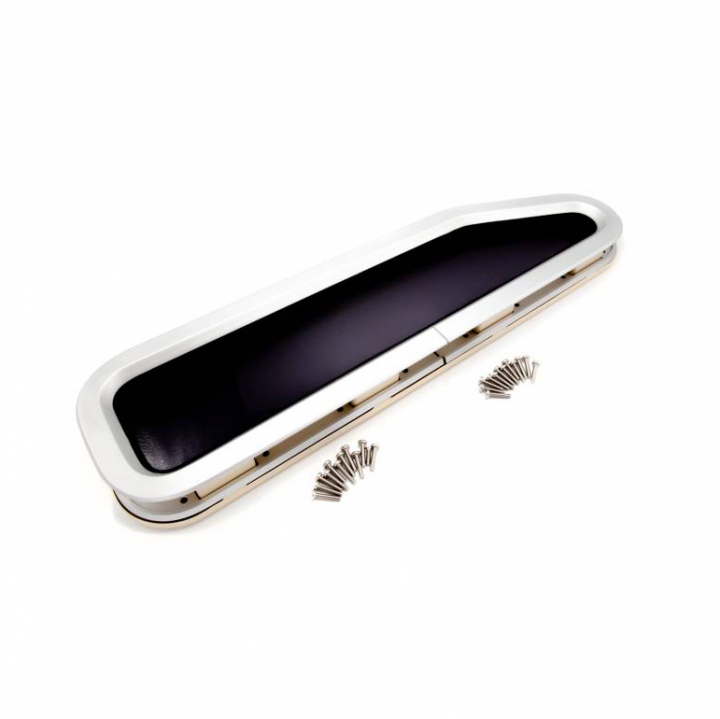 Rekommendationen är att använda tätningsmassa mellan ventil och skrovsida. Luckan låses fast med en klämma och akrylglaset är som standard grå.