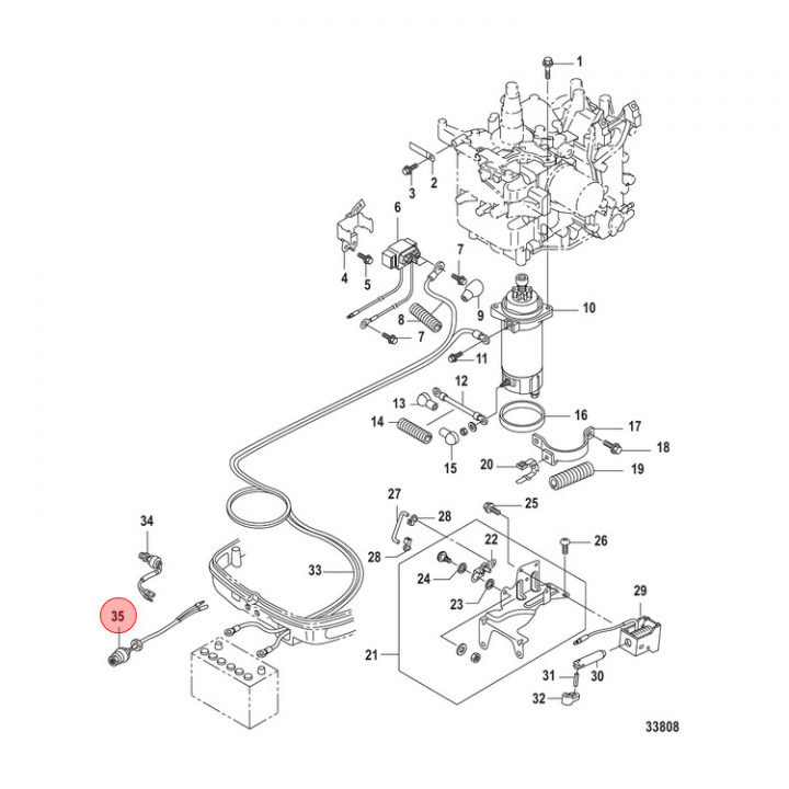 Startknapp Mercury 8-30 hk (853820A02). Titta i din epc för att säkerställa att delen passar just din motor. - Egenskaper