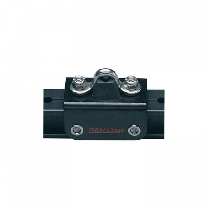 Skotvagn med bygel för 32 mm I-skena, avsedd för båtar upp till 40 fot. Skenorna kan böjas i form. Skenorna är tillverkade av svart eloxerad aluminium.