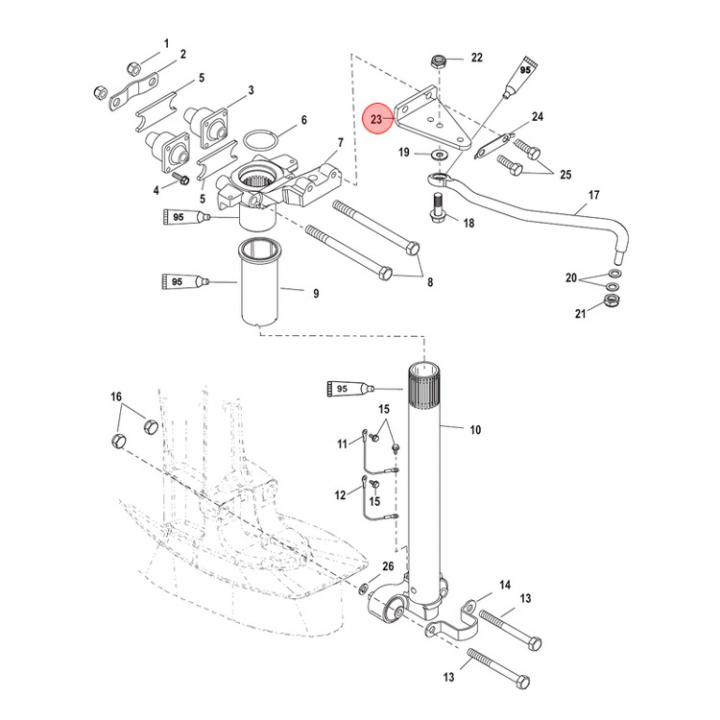 Styrfäste (816667A2) till Mercury 11-25/30-40/50-60 hk utombordare. Titta i din epc för att säkerställa att delen passar just din motor. - Egenskaper