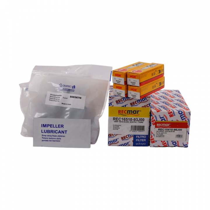 Suzuki servicesats till DF150, DF175(2006+) OEM nr. 17400-96824-000. Innehåller oljefilter, bränslefilter, tändstift och impeller.
